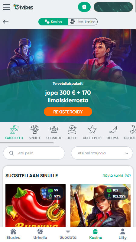 Uudemmat nettikasinot, kuten Ivibet, on suunniteltu mobiili pelaamista ajatellen. Koska kasino on täysin optimoitu mobiililaitteille, ei sinun tarvitse ladata erillistä sovellusta päästäksesi pelaamaan Ivibetin mobiiliversiolla. Pääset siirtymään Ivibetin mobiiliversioon nopeasti ja helposti oman mobiililietteesi selaimen kautta, josta mobiilikasino aukeaa sinulle automaattisesti. Näin ollen kaikki suosikkipelisi ovat kätesi ulottuvilla missä ja milloin tahansa!