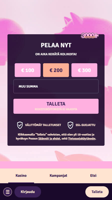 Tervetuloa siis Possu Casinolle – helposti ja nopeasti, muutaman minuutin rekisteröitymisellä ja ilman monimutkaisia vaiheita!