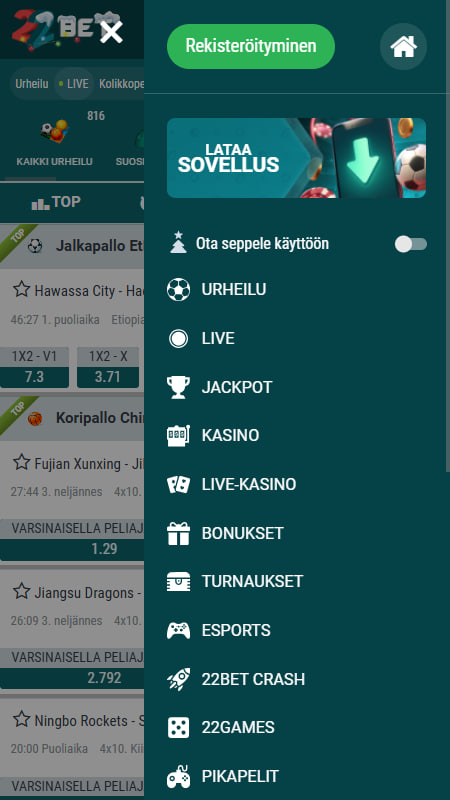 Rekisteröityminen ja pelitilin luominen voi ajoittain tuntua aikaa vievältä ja työläältä. 22BET on kuitenkin tehnyt sivustolle rekisteröitymisestä mahdollisimman käyttäjäystävällistä, nopeaa ja helppoa. Näin ollen pääset nauttimaan 22BETin vedonlyönti valikoimasta mahdollisimman nopeasti!