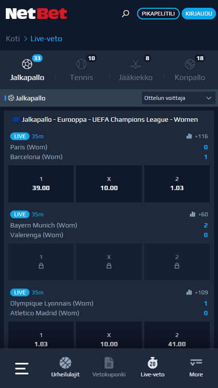 NetBet on yksi vanhimmista ja hyvämaineisimmista pelisivustoista. NetBetin käyttöliittymä suunniteltiin täysin uudelleen, mikä teki siitä paljon nykyaikaisemman ja tyylikkäämmän sivuston. Uudistuksen jälkeen ulkoilme vastaa nykyajan odotuksia suosituilta vedonlyöntisivustoilta. NetBet tarjoaa monia vedonlyöntimahdollisuuksia hyvillä kertoimilla ja laajalla tarjousvalikoimalla, joten vaihtoehtoja vedonlyöntiin on runsaasti.